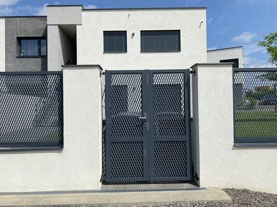 Výplň pletivo, plotový panel či třeba tahokov. Barvy zelené, antracitové, pozink.