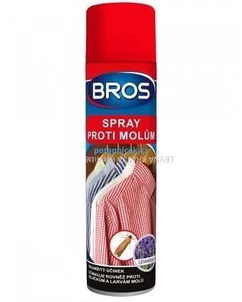 SprejprotimolůmBros Insekticidní sprej s okamžitým účinkem hubí šatní moly. Aerosol účinně ničí nejen moly samotné, ale i jejich vajíčka a larvy v šatnících,..