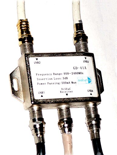 DiSEqC (Digital Satellite Equipment Control) je speciální komunikační protokol používaný mezi satelitním přijímačem a zařízeními jako je motor otáčející parabolickou anténu nebo přepínač mezi zdroji signálu z více parabol. Protokol je kompatibilní se zařízeními používanými k natáčení velkých parabolických antén pracujících v pásmu C, pokud se použije s DiSEqC pozicionérem. Napájení a přenos povelů se děje po stejném koaxiálním kabelu, kterým přichází signál do satelitního přijímače. Existují… Wikipedie