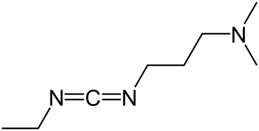 Ethyl(dimethylaminopropyl)karbodiimid (zkráceně EDC, EDAC nebo EDCI) je ve vodě rozpustný karbodiimid nejčastěji používaný ve formě hydrochloridu. Obvykle se používá při pH 4 až 6. Nejčastěji slouží k aktivaci karboxylových skupin při syntéze amidů z aminů. Lze jej také použít na aktivování fosfátových skupin při přípravě fosfomonoesterů a fosfodiesterů. K častým… Wikipedia
