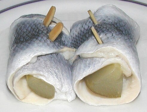 Zavinutý řez ze sledě a zeleniny v kyselém nálevu