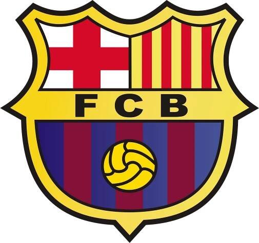 the emblem of barcelona fc on a striped background