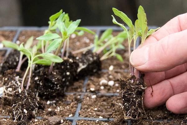sazenice připravené k přesazování